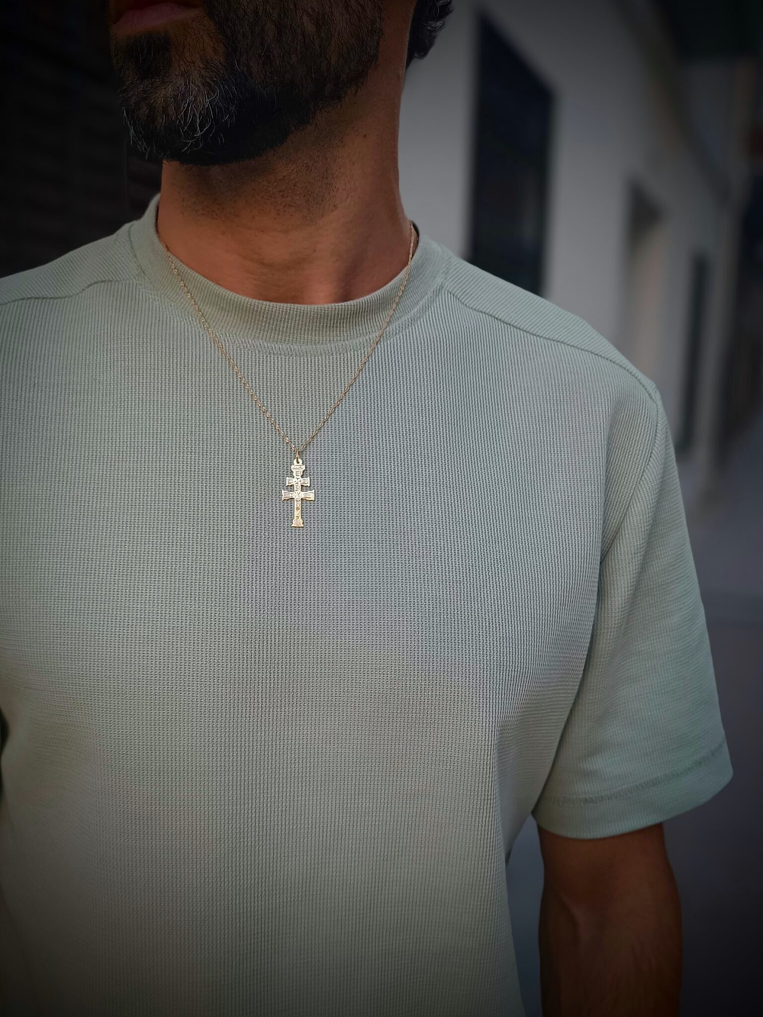 Las cruces de Caravaca grabadas a mano en oro de 18 quilates son auténticas obras de arte que destacan por su acabado único. Desde nuestro taller de orfebrería elaboramos las cruces de manera artesanal, cuidando el acabado para resaltar su belleza natural y el simbolismo.