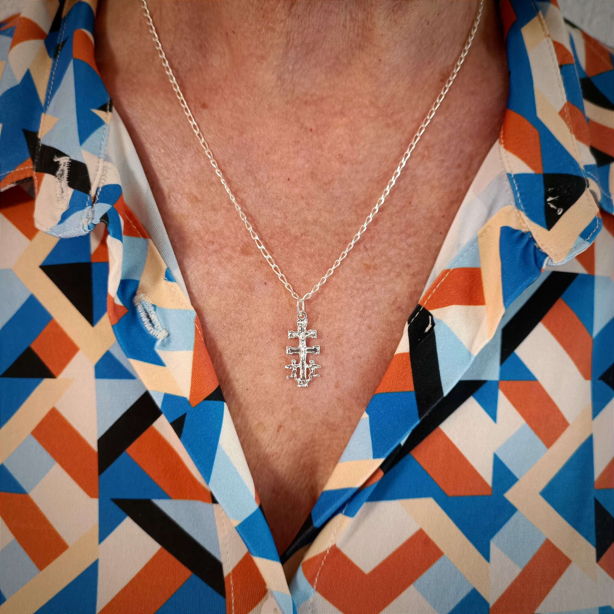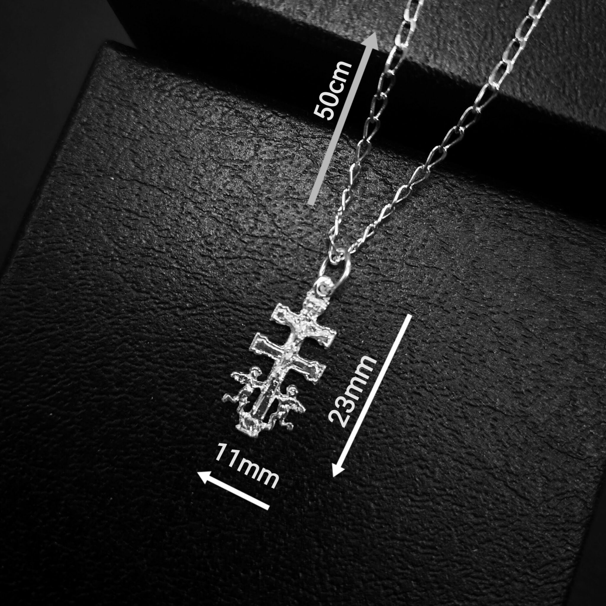 • DISEÑO. Este colgante de la Cruz de Caravaca es una obra de arte única y significativa que combina Belleza y Espiritualidad. Su hermoso diseño y cuidadosa elaboración lo hacen un objeto valioso tanto por su apariencia estética como por su significado religioso. Dimensiones: – Colgante 23 x 11 mm, alto total de 27 milímetros – Cadena: 50cm de largo. Todo en Plata de Primera Ley 925 milésimas. Empaquetado en nuestro estuche oficial de alta calidad propio de joyería. Ideal para Regalo. Nos aseguramos de que su paquete llegue correctamente y en la mayor brevedad, por ello lo enviamos nosotros personalmente desde Caravaca de la Cruz.