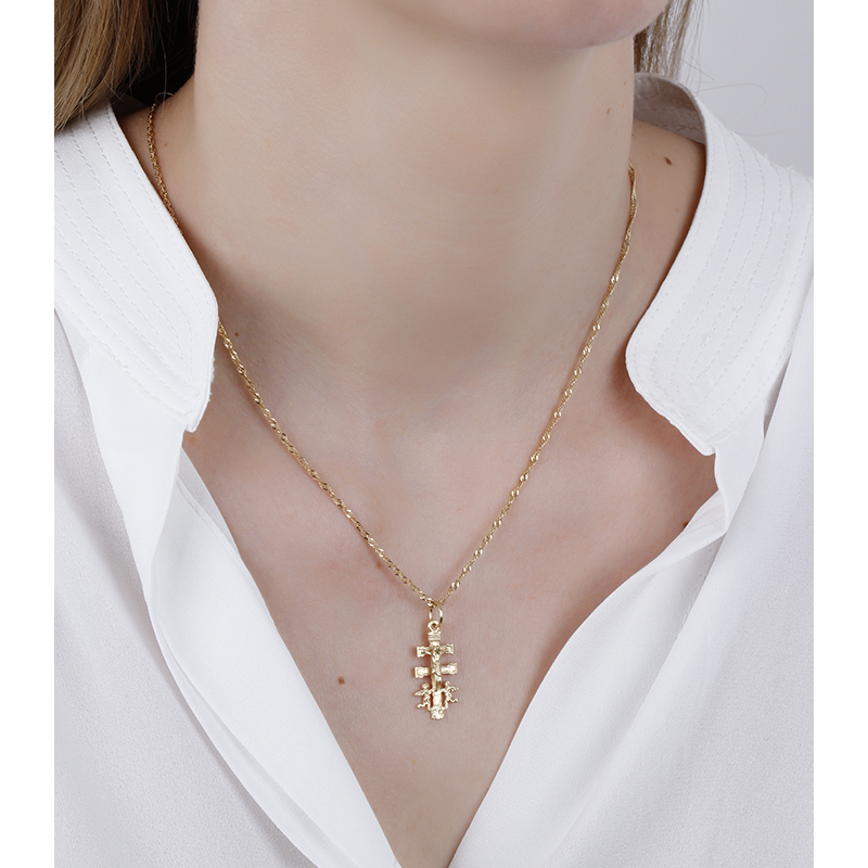 Cruz de Caravaca fabricada en oro de primera ley 18 kilates. PLANA, grosor fino