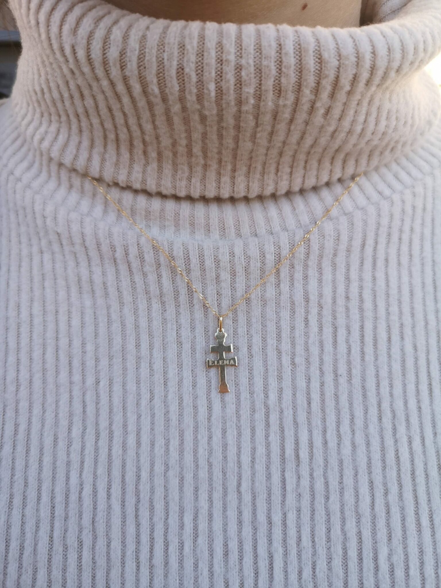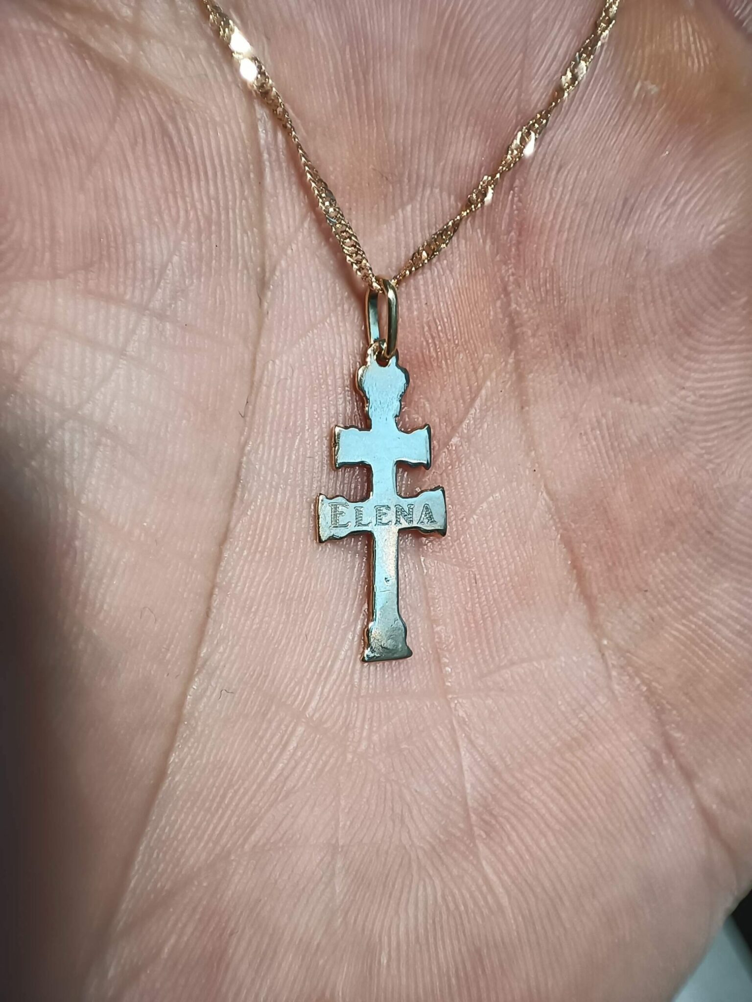 Colgante de la Cruz de Caravaca en oro de 18 kilates(750mm) personalizada con tu nombre o el nombre de aquella persona especial que quieras llevar o a la que se lo quieras regalar. Sin duda, no hay mejor regalo que algo personalizado.