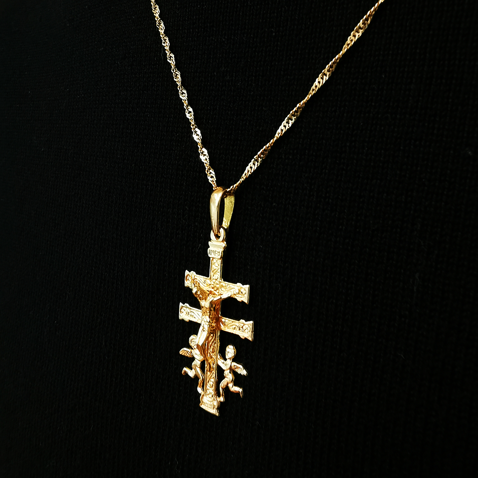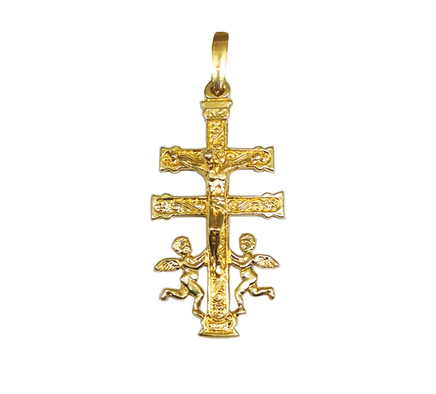 Cruz de Caravaca Oro Angeles Cristo Relieve | 4cm