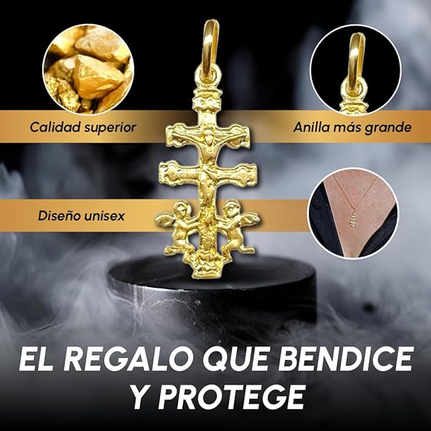 Cruz de Caravaca Bendecida Oro Ley 18K Angeles – Pequeña 1,8 cm.
