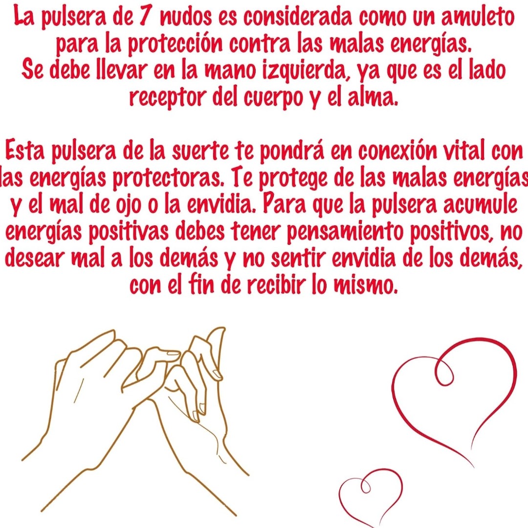 - ESTILO: Esta pulsera roja de 7 nudos con la Cruz de Caravaca en plata es el accesorio perfecto para quienes buscan una combinación de estilo y espiritualidad. Cada nudo de la pulsera está cuidadosamente elaborado a mano, simbolizando protección y buena suerte. La cuerda roja, tradicionalmente conocida por sus propiedades de amuleto contra el mal de ojo, añade un toque de color vibrante y significativo.