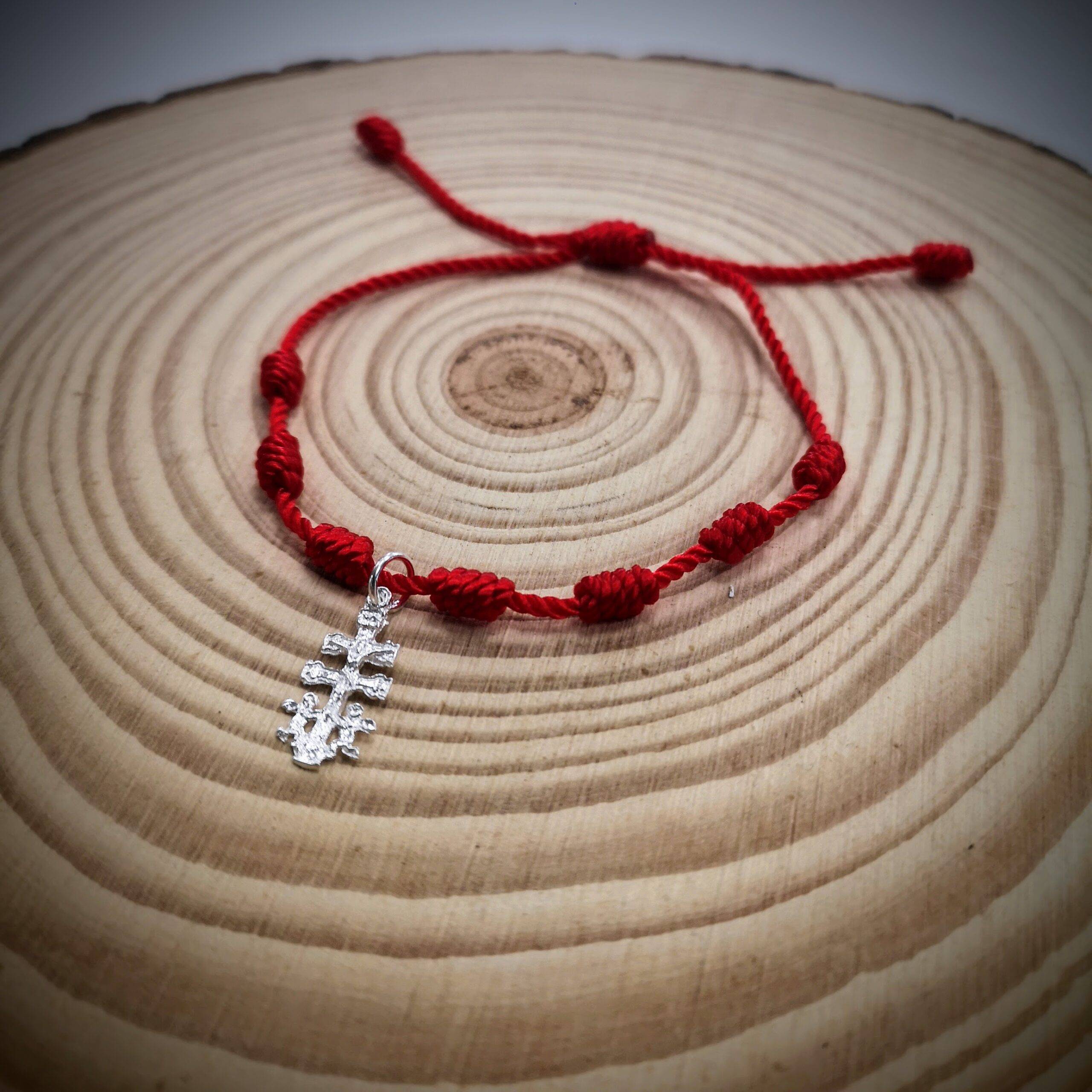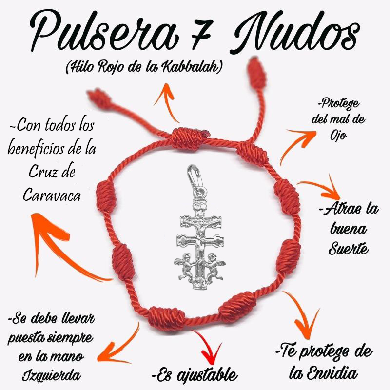 - CARACTERÍSTICAS: Material de la pulsera: Cuerda roja resistente -Número de nudos: 7, hechos a mano -Adorno central: Cruz de Caravaca en plata de ley -Longitud ajustable para un agarre perfecto -Ideal para uso diario y ocasiones especiales